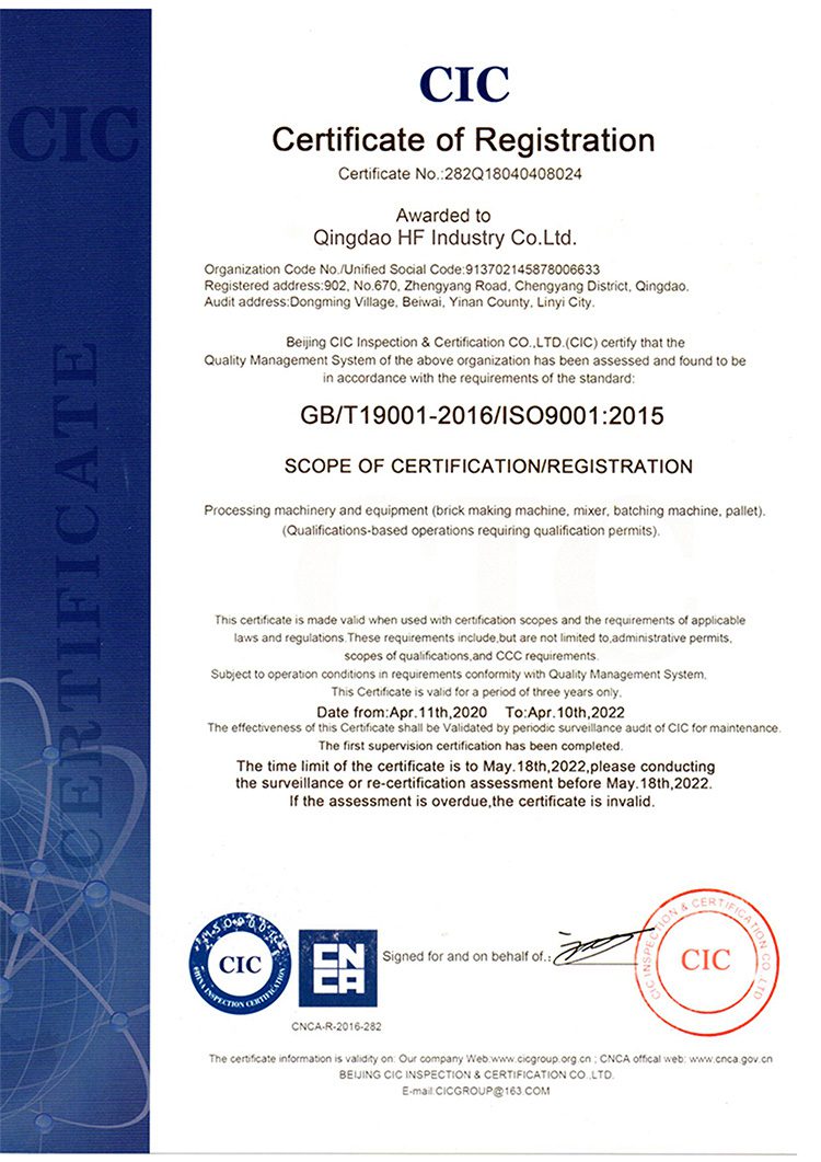 HF es una empresa con sede en Qingdao, China, que se especializa en máquinas para fabricar bloques de alto rendimiento. Contamos con asequibilidad, soporte y servicio líderes en la industria. Con 35 años de experiencia en la industria de bloques, hemos logrado un desarrollo considerable. Nuestras ventas han mantenido una tasa de crecimiento de más de 3 veces por año.